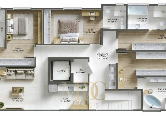 Piso aquecido nos banheiros das suítes