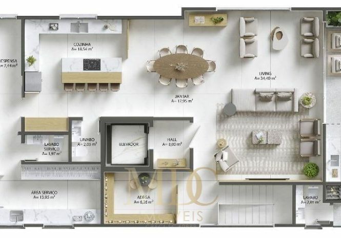 Sala de estar e jantar integradas