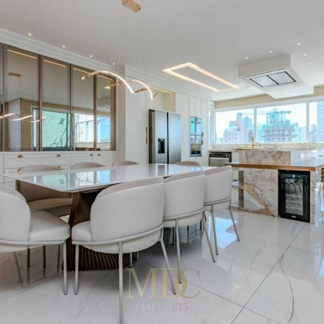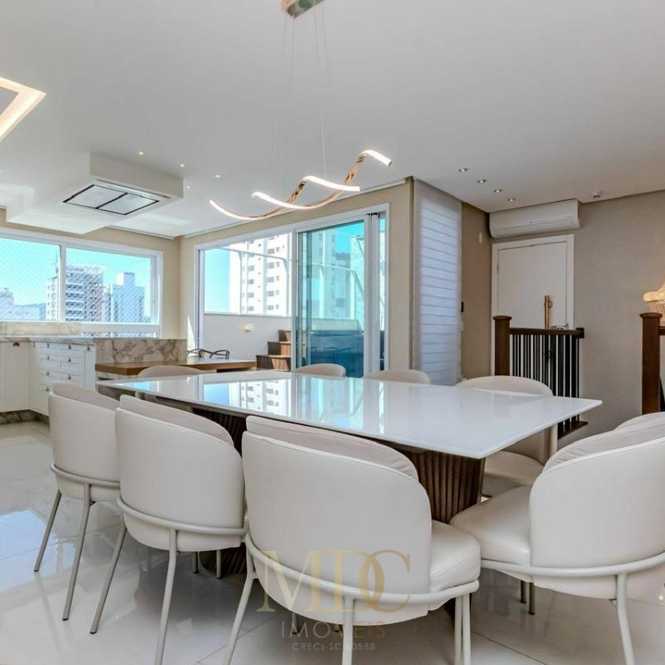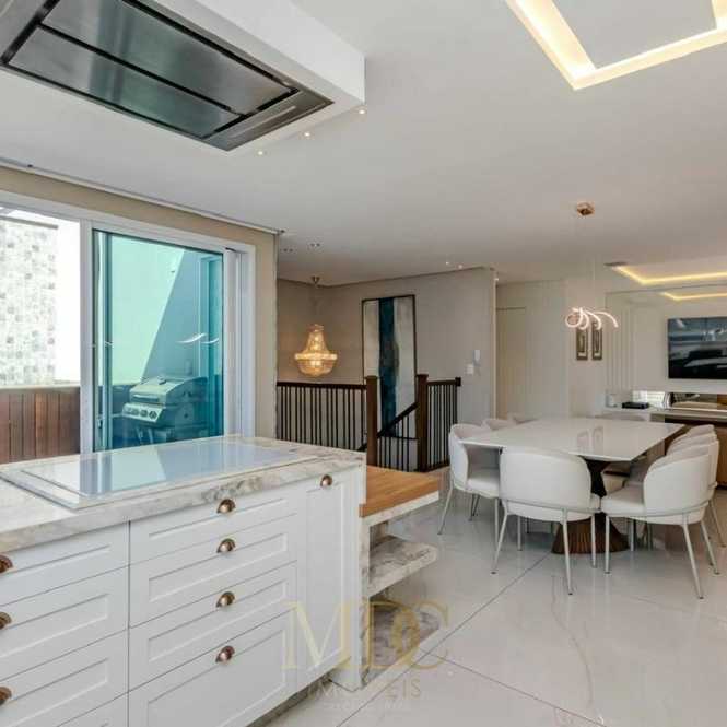 Com 185 m² privativos, o imóvel é composto por 3 suítes, lavabo, amplo living integrado, mini adega, ambientes planejados e totalmente automatizados, oferecendo praticidade e sofisticação no dia a dia. A cobertura dispõe ainda de piscina aquecida privativa, acabamento de alto padrão, está 100% mobiliada e pronta para morar, além de 3 vagas de garagem.