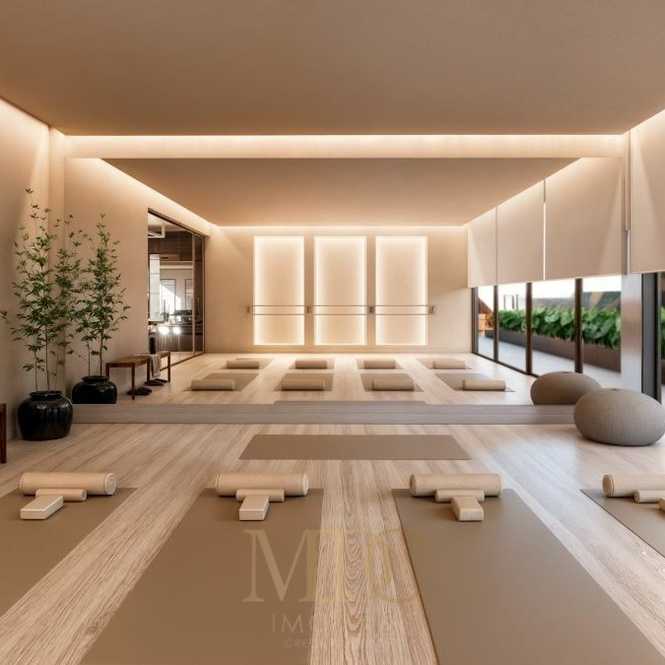 O empreendimento oferece uma infraestrutura completa de lazer e convivência, incluindo piscinas adulto, infantil e térmica, spa, sauna, jacuzzi, academia, estúdio de pilates, espaços gourmet, salão de festas, pub, brinquedoteca, playground, sala de jogos, sala de games, lounge, bar, áreas de estar social e sala de reuniões, configurando um verdadeiro clube residencial.