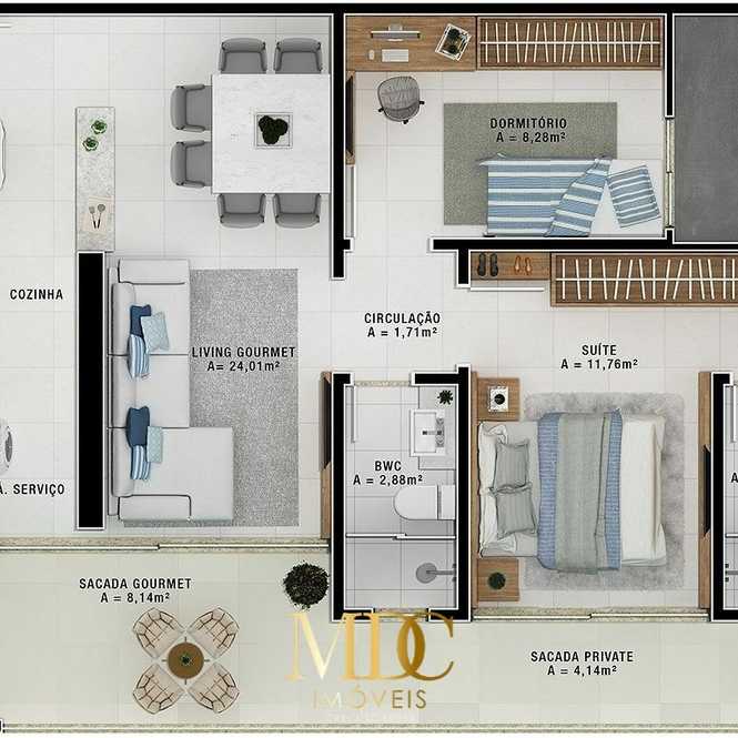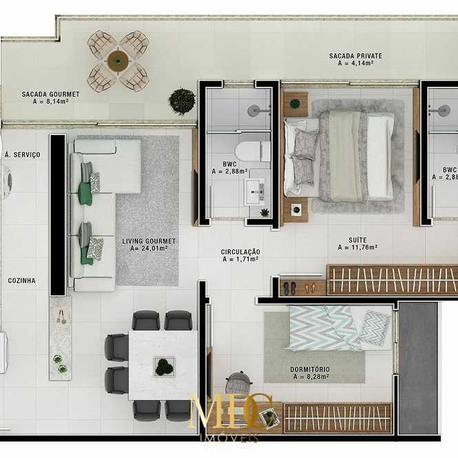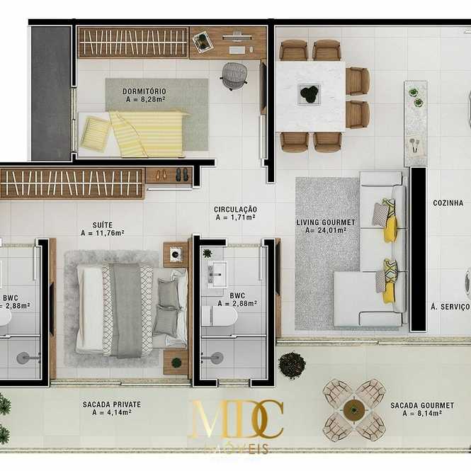 Plantas 2 dormitórios, Dom Bosco - Itajaí