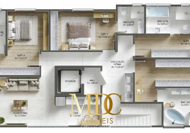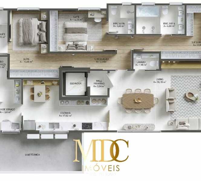 Este apartamento único por andar, localizado no 13º pavimento, oferece uma planta ampla de 175,19 m², combinando elegância e funcionalidade em cada detalhe.